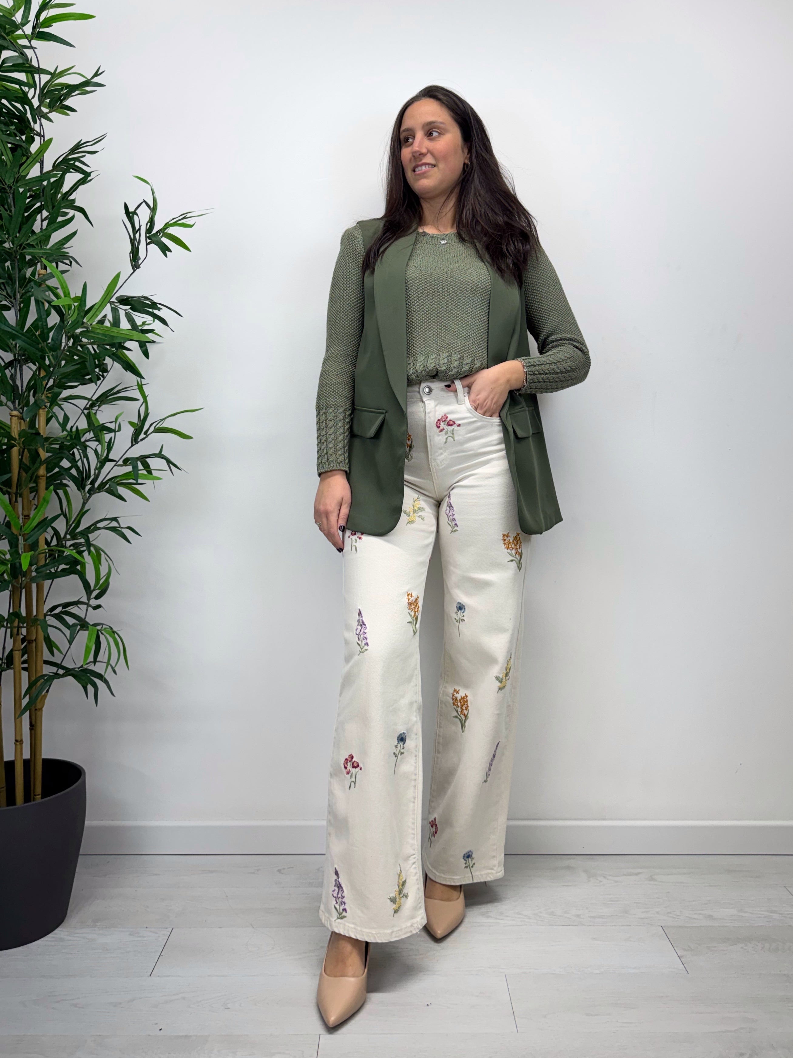 Pantaloni a palazzo DORA verde militare